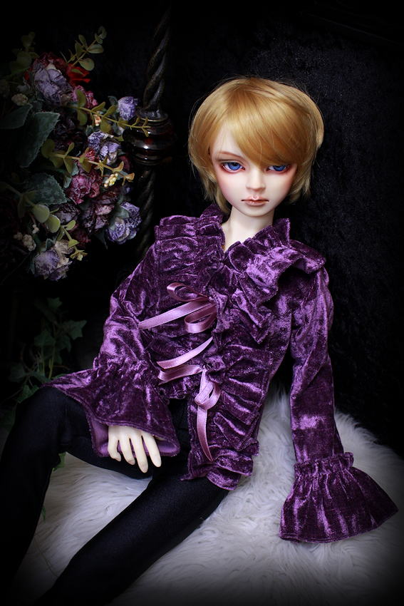 ◆velvet prince 2021◆ ~Amethyst~ velvet prince frill blouse for SDGrB/SD13B アイテム:velvet prince frill blouse カラー:アメジスト サイズ:SDGrB/SD13B 綿混のクラッシュベルベットを使用 別珍とベルベットの中間のような素材です フロントにてサテンリボン2点留め