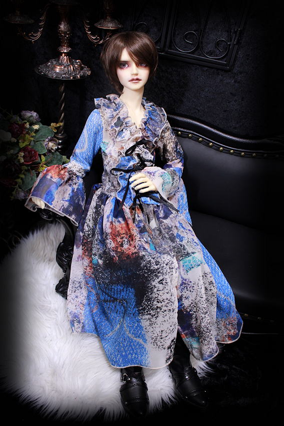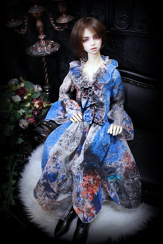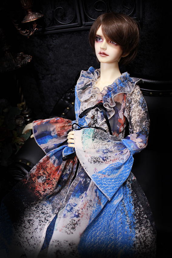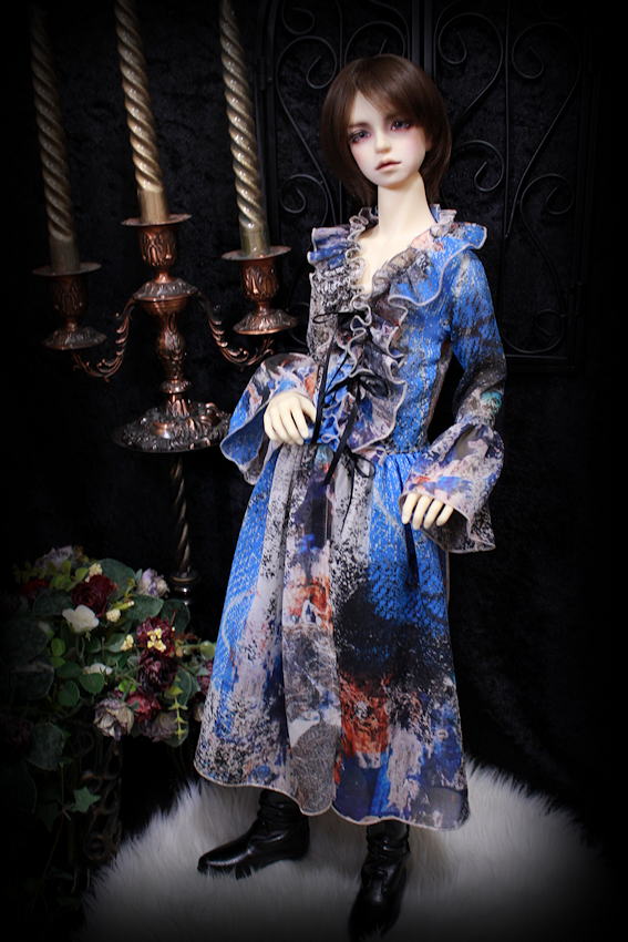 抽象柄の薄手のシフォンジョーゼットを使用。
