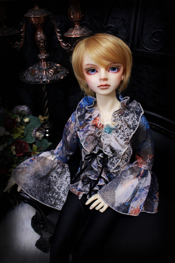 Costa rocciosa frill blouse for SDGrB Costa rocciosa~岩だらけの海岸 抽象柄の薄手のシフォンジョーゼットを使用。 透け感があります。 ごつごつとした岩だらけの海岸。時々覗く青は断崖に打ち付ける波。 そんなイメージを載せたシフォンフリルブラウスです。 フロントにてサテンリボン2点留め。