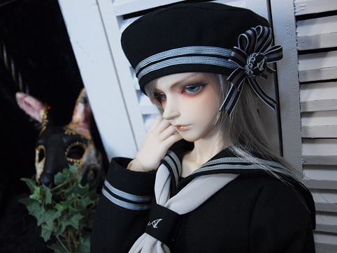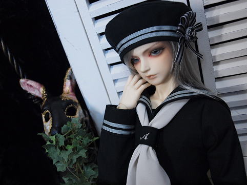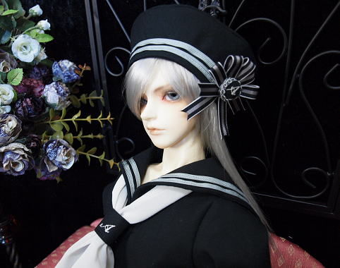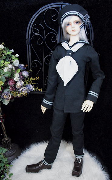 セーラージャケット・ロングパンツ・ベレー帽の3点セット