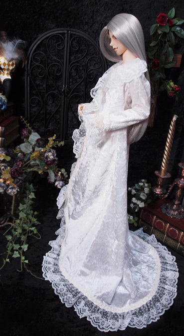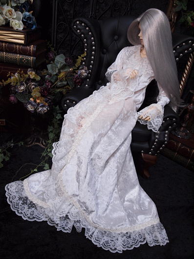 †clash velvet nightrobe†snow white† for SD17B クラッシュベルベットのロングナイトローブ ◆カラー:スノーホワイト ◆見本サイズ:SD17B/SD16B ◆商品詳細 伸縮性のないクラッシュベルベットを使用 光沢のある生地とオフホワイトのブレード、タックの施されたラッセルレースを使用し、 豪華かつ上品な印象に仕上げました フロントにてスナップ1点留め 画像のモデル:SD17B