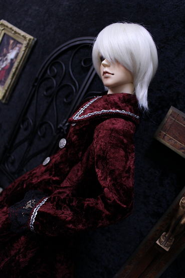 光沢のある生地とシルバー系ブレード・黒ラッセルレースを使用。