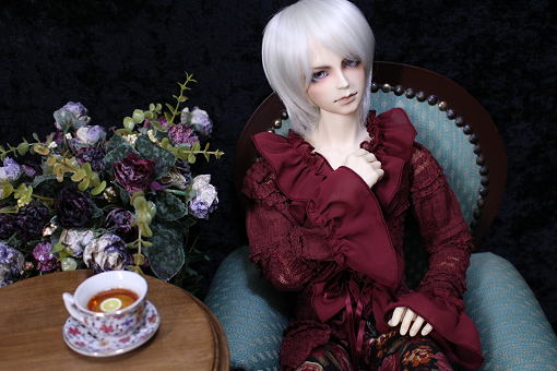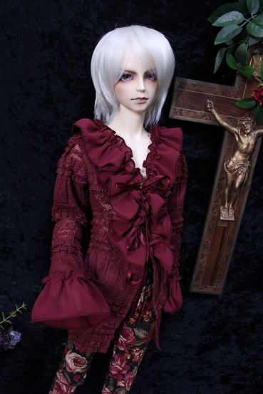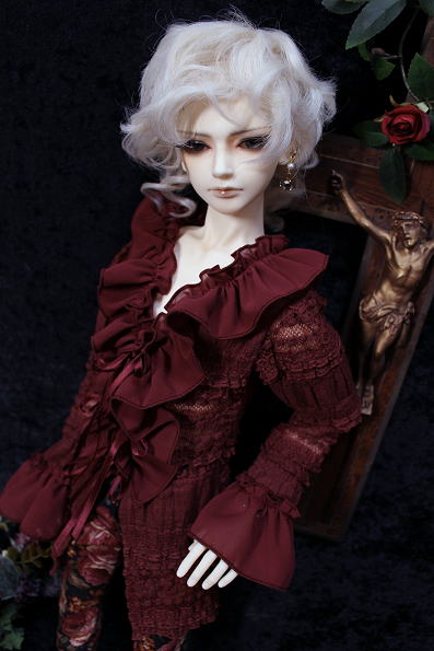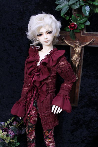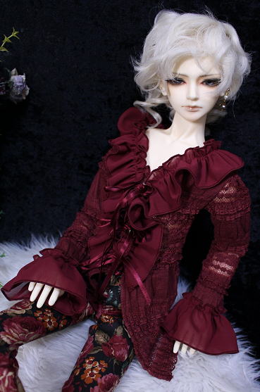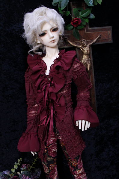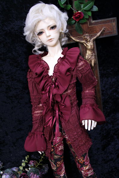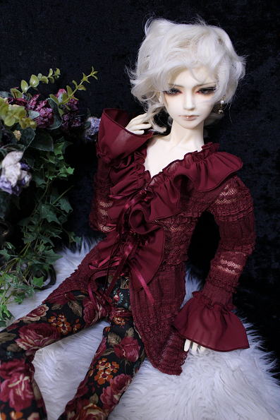 アンティークフリルのブラウス・Rose wine