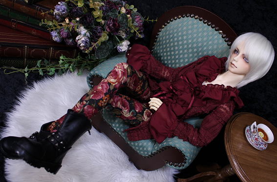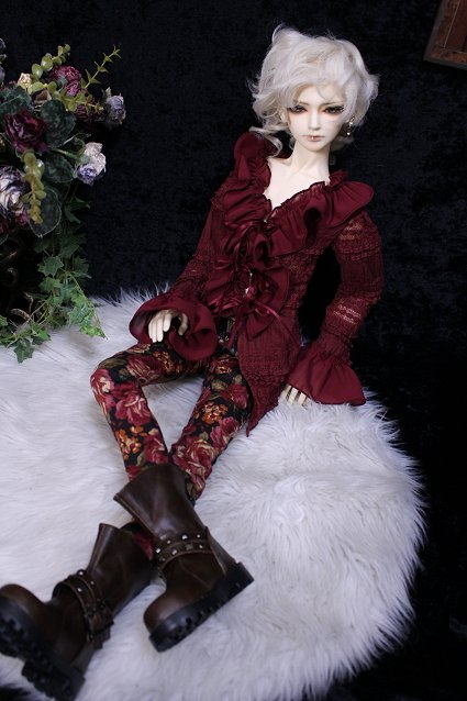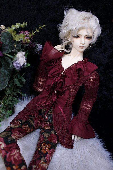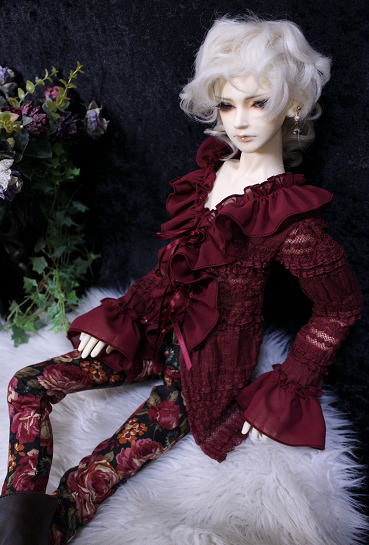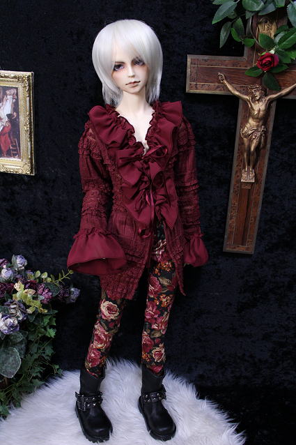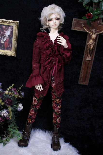 †rose wine antique frill blouse and rose pants†
