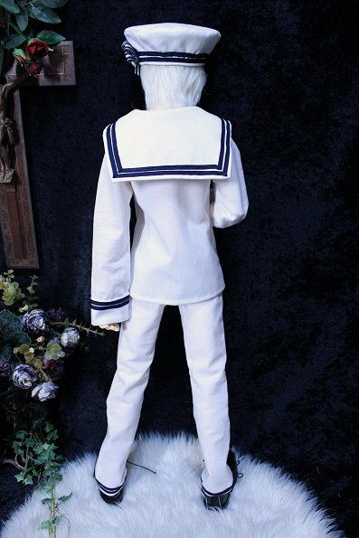セーラージャケット・ロングパンツ・ベレー帽の3点セット