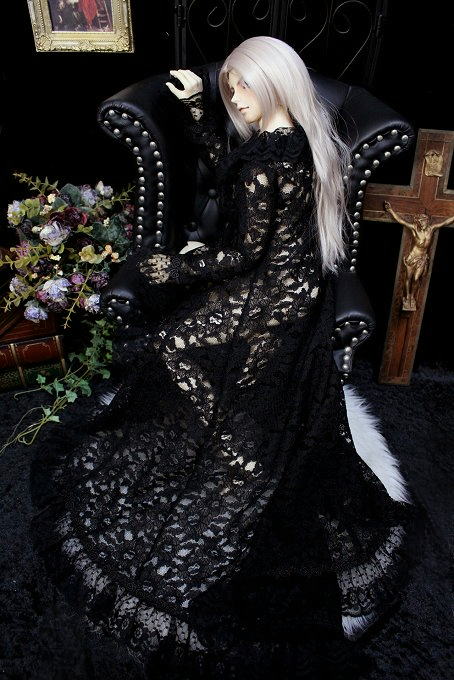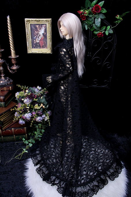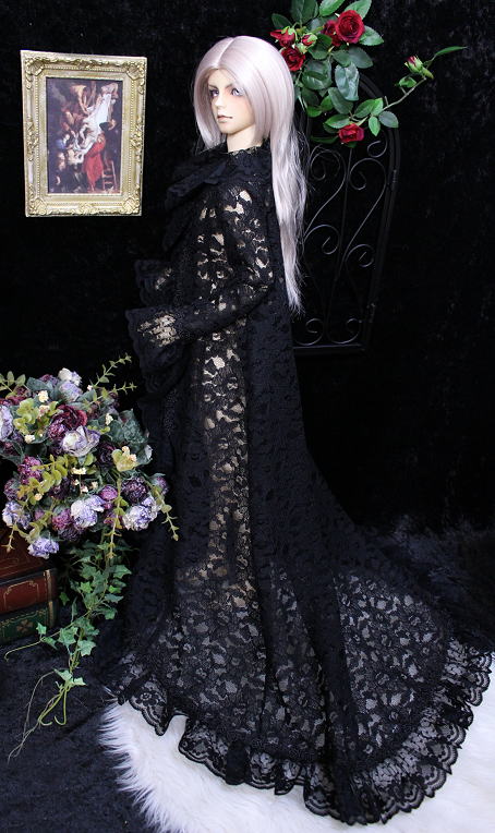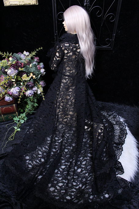 ◆ローブ周囲にはフリル多めのラッセルレースを豪華に使い