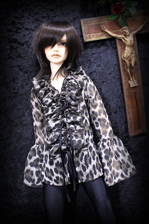 Leopard frill SD17B frill blouse レオパード柄プリントのシフォンジョーゼットを使用したフリル作品。 シワになりにくくとても扱いやすい 落ち感に優れた一着です。 フロントにて両面サテンリボン3点留め リボンを外す位置により衣装の表情が変わります