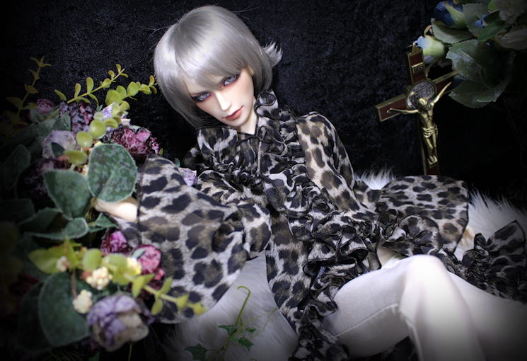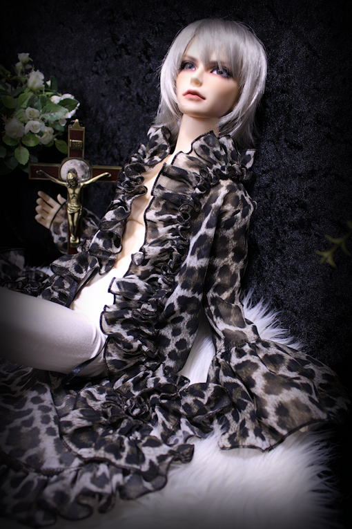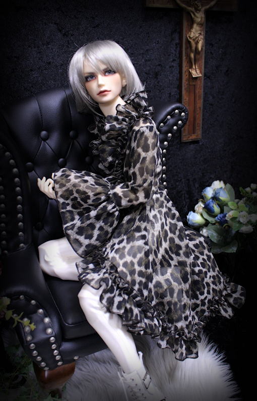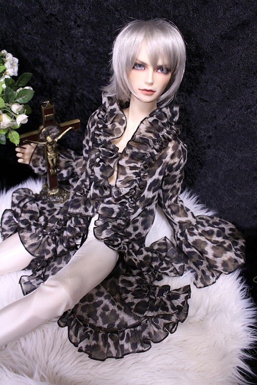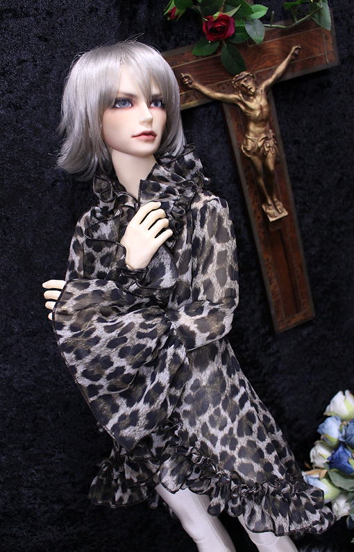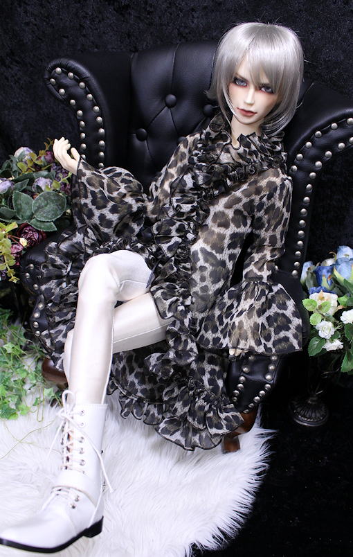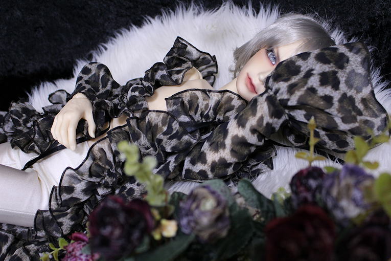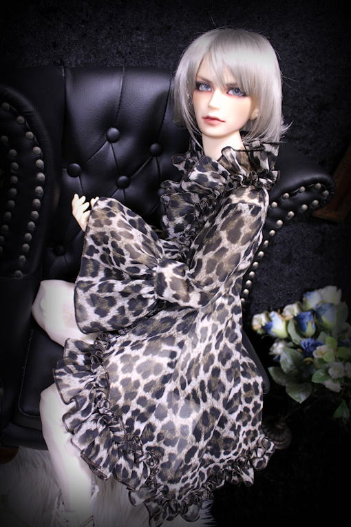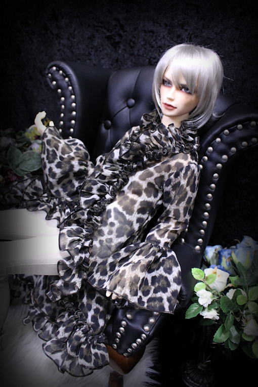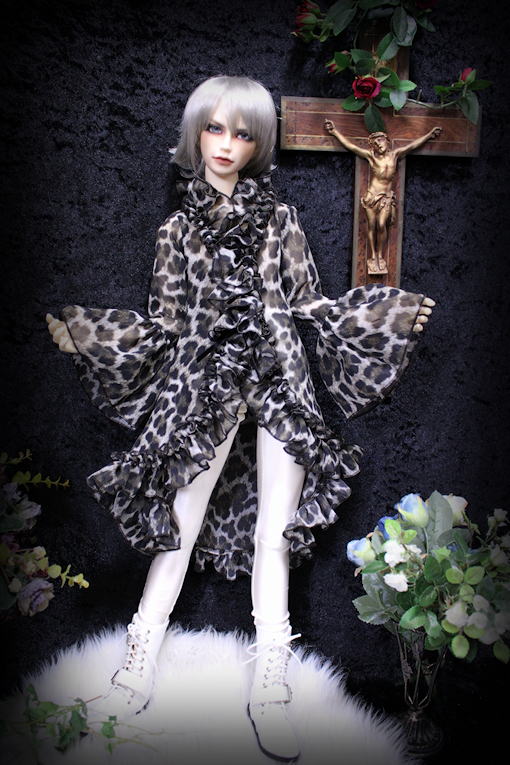 Leopard frill SD17B Robe style frill blouse レオパード柄プリントのシフォンジョーゼットを使用したフリル作品。 シワになりにくくとても扱いやすい 落ち感に優れた一着です。 フロントにて両面サテンリボン2点留め