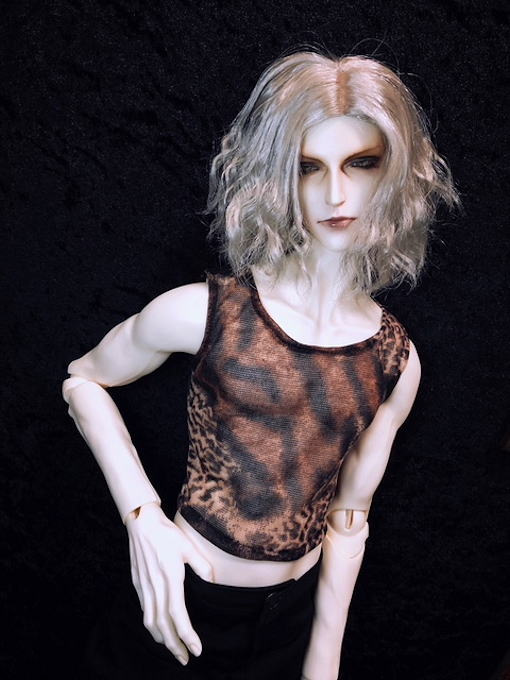 Animal no sleeve tops アニマル柄のノースリーブトップスです 単品でのご着用はもちろん、 ジャケット等のインに重宝する一着になりました やわらかいニット生地を使用 バックにてスナップ開閉です サイズ:i.o.s. class 80 male body