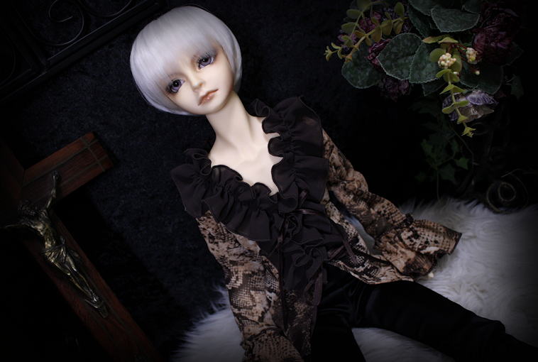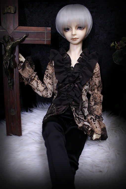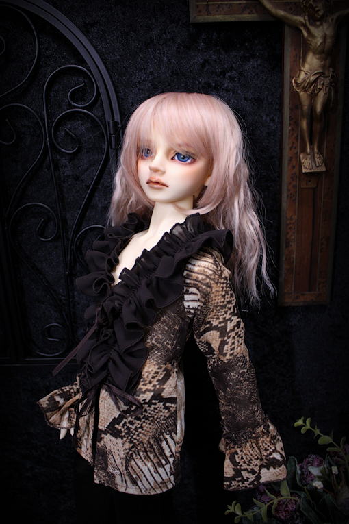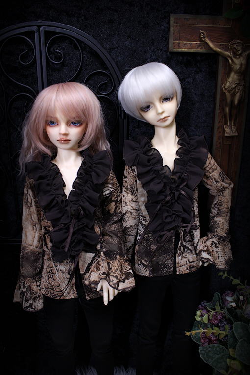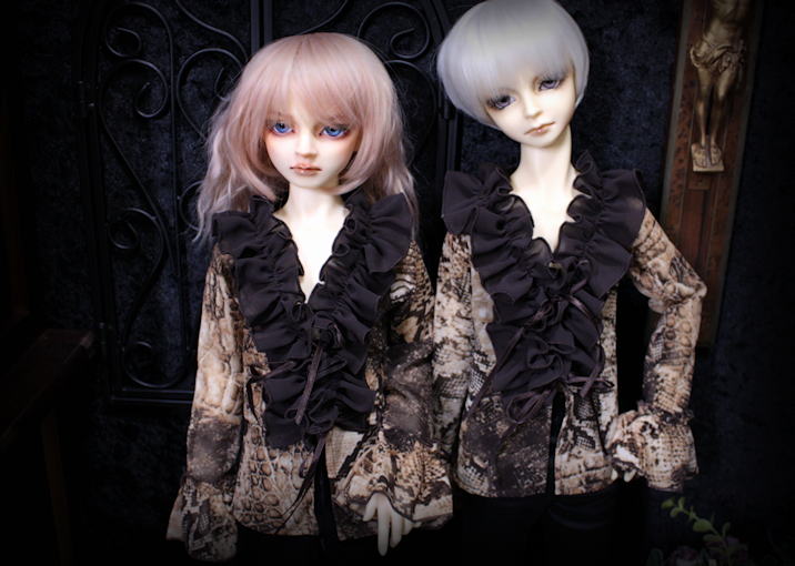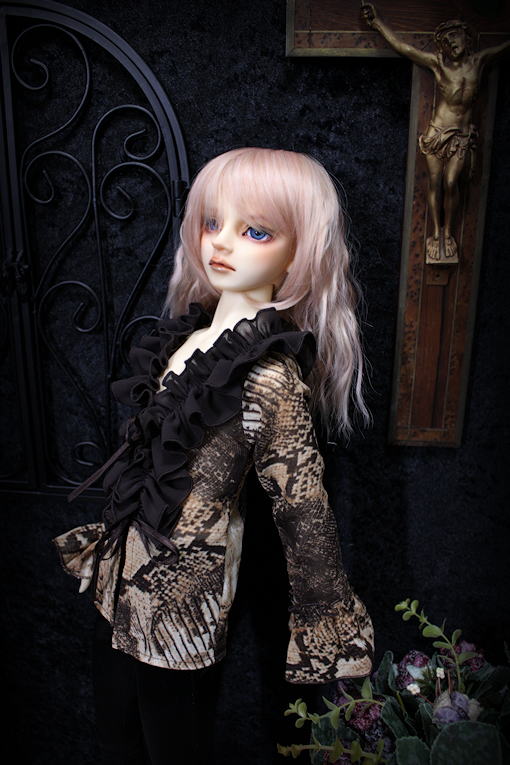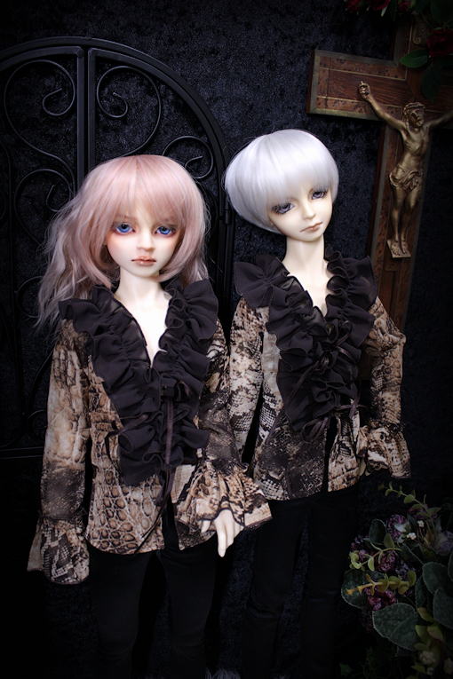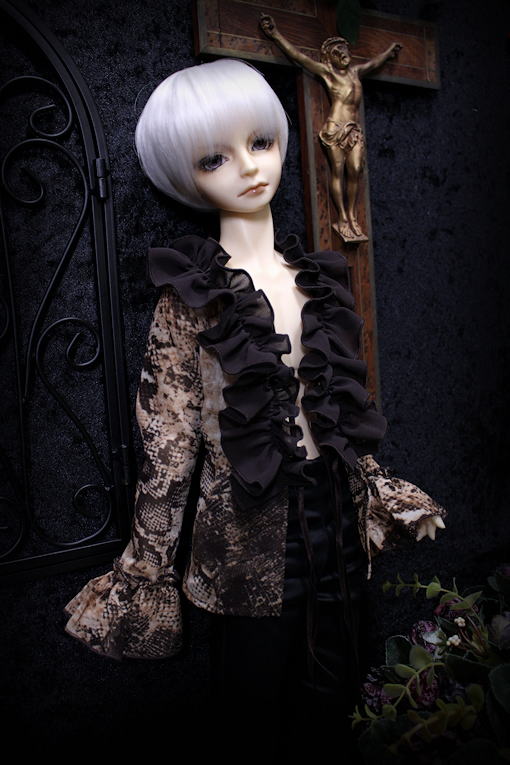 襟元フリルはチョコレートカラーのシフォンを使用しています