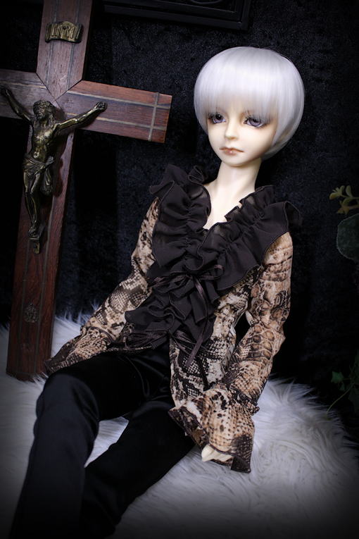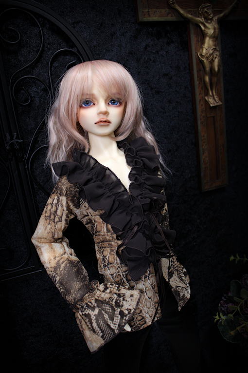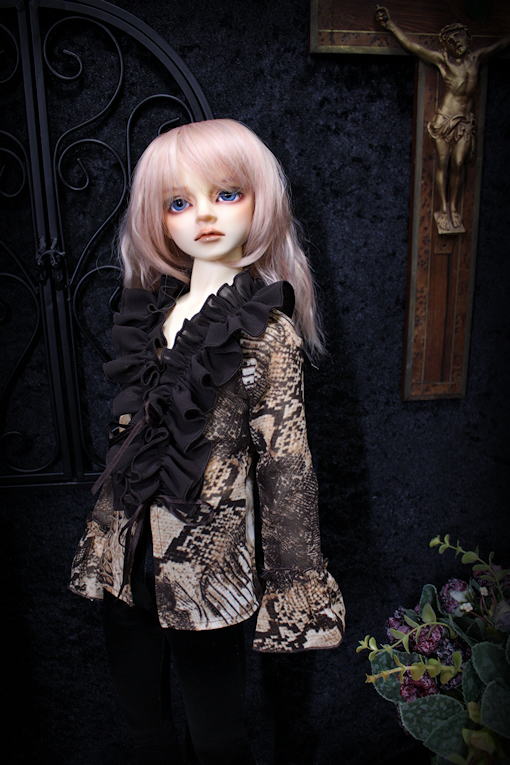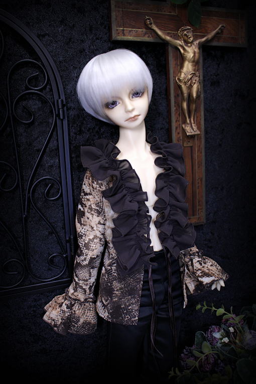 ブラウン系のパイソン(蛇)柄綿ローン素材を使用