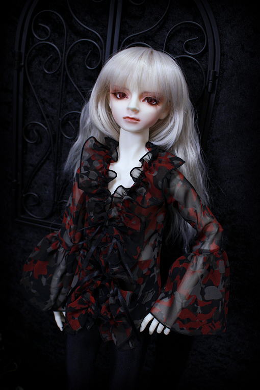 for the Halloween Night 2020 【ma・da・ra】 see through frill blouse for SDGr7B 極薄シフォンに赤と黒のまだら模様… 少し毒のある衣装はいかがでしょう? フロントにてリボン2点留めです