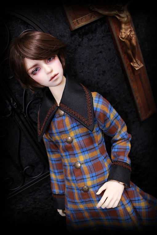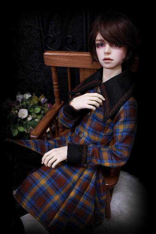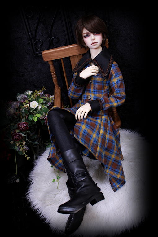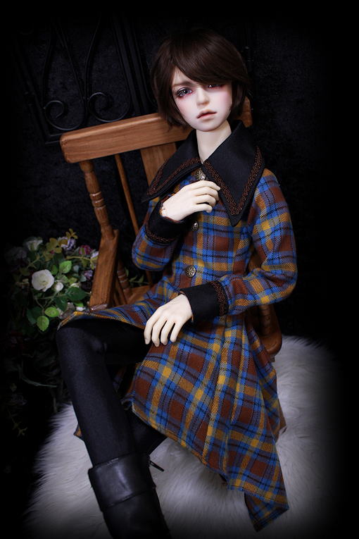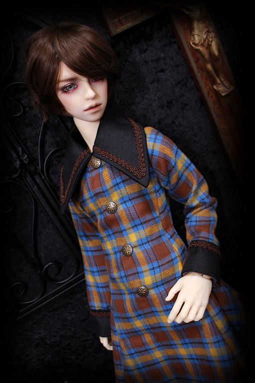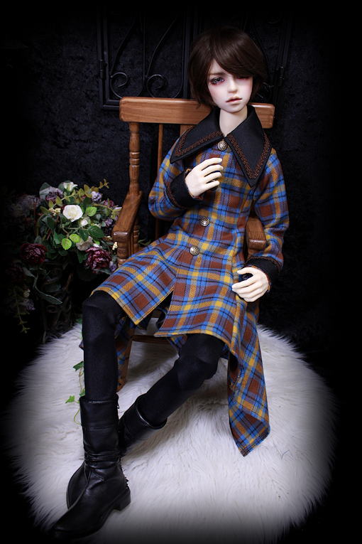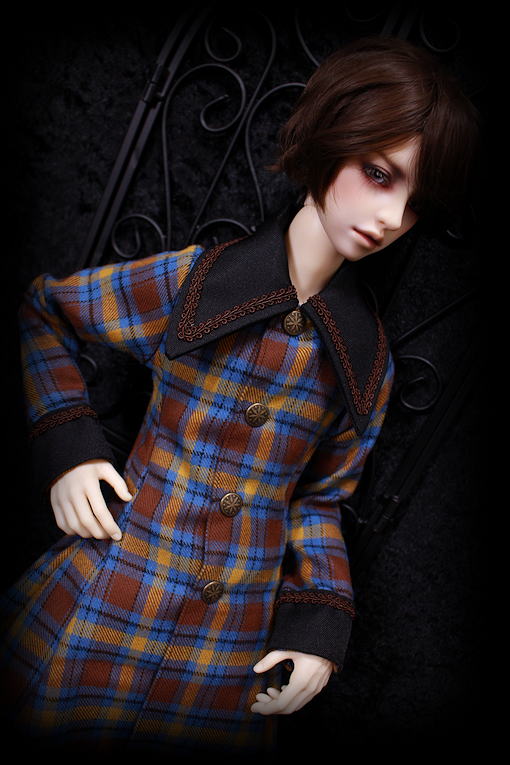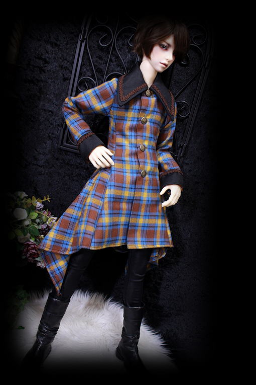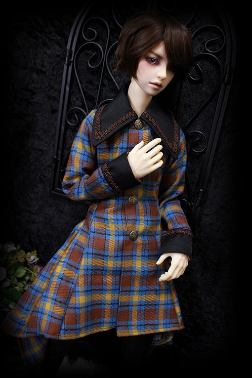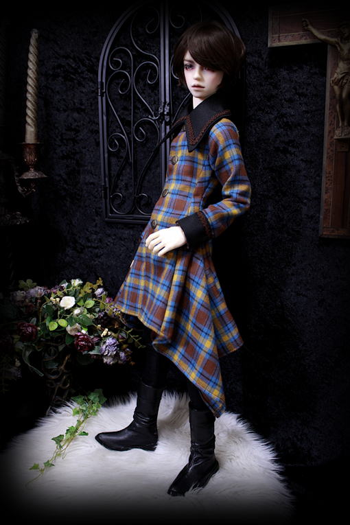 気品あふれるクラシカルなチェックに襟とカフスをブラックでコーディネート。
