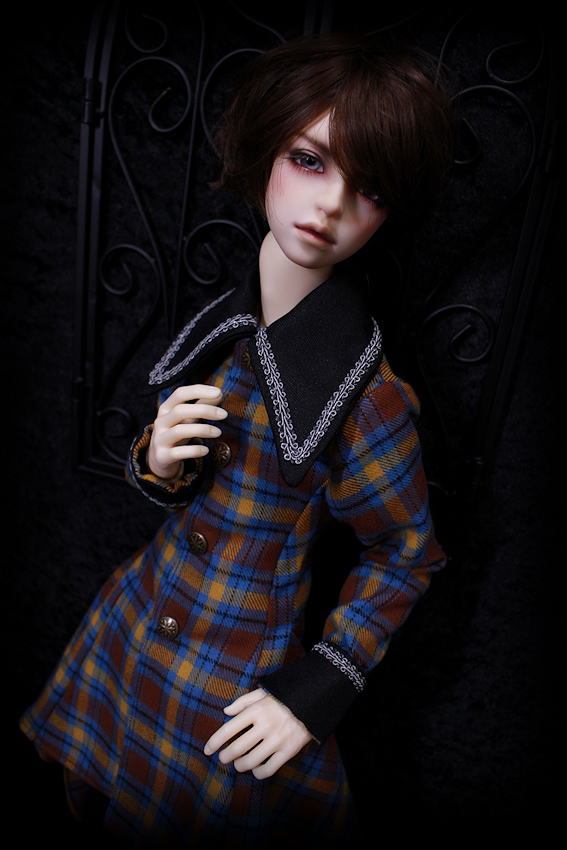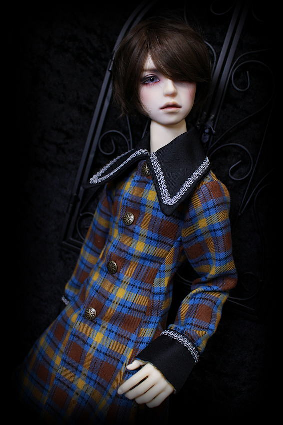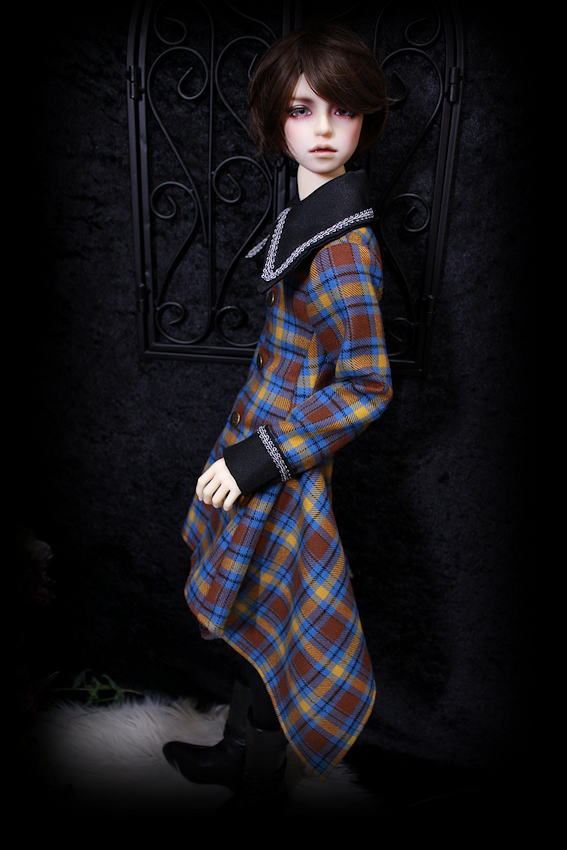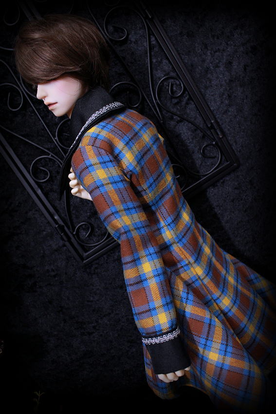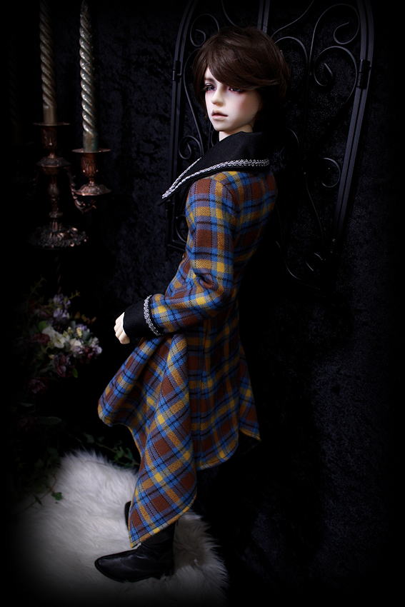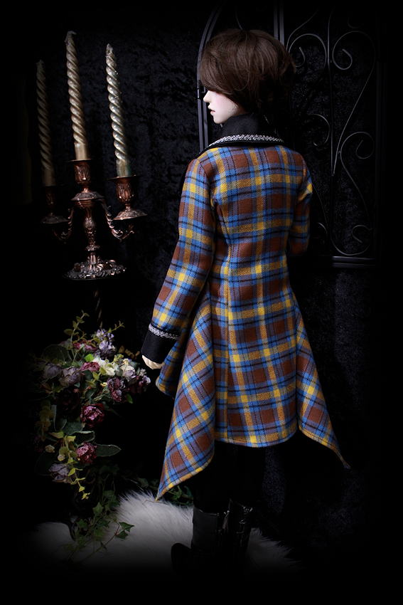 気品あふれるクラシカルなチェックに襟とカフスをブラックでコーディネート。