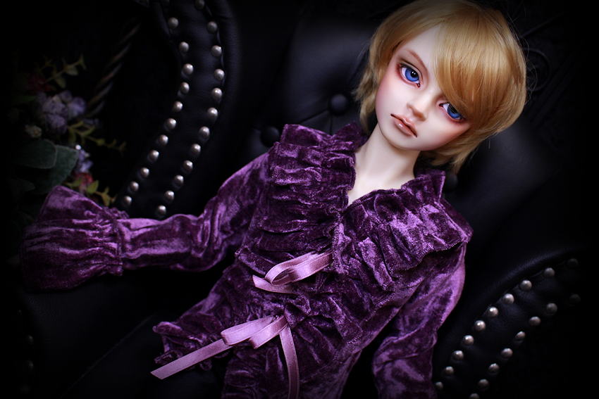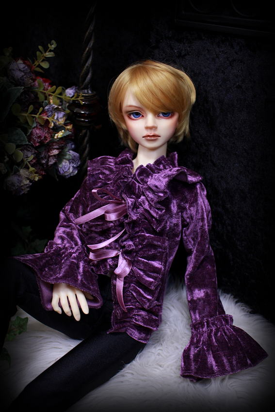 ◆velvet prince 2021◆ ~Amethyst~ velvet prince frill blouse for SDGrB/SD13B アイテム:velvet prince frill blouse カラー:アメジスト サイズ:SDGrB/SD13B 綿混のクラッシュベルベットを使用 別珍とベルベットの中間のような素材です フロントにてサテンリボン2点留め