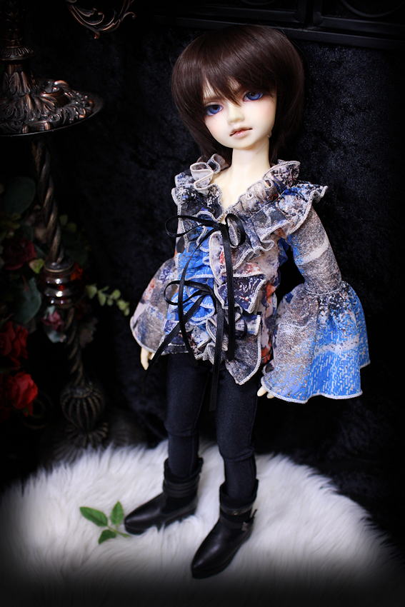 Costa rocciosa frill blouse for SDM Costa rocciosa~岩だらけの海岸 抽象柄の薄手のシフォンジョーゼットを使用。 透け感があります。 ごつごつとした岩だらけの海岸。時々覗く青は断崖に打ち付ける波。 そんなイメージを載せたシフォンフリルブラウスです。 フロントにてサテンリボン2点留め。