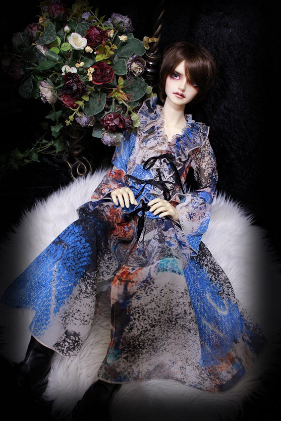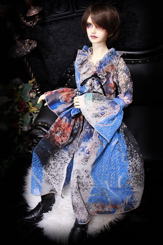 抽象柄の薄手のシフォンジョーゼットを使用。