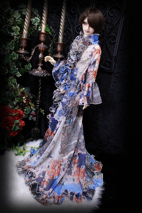 抽象柄の薄手のシフォンジョーゼットを使用。